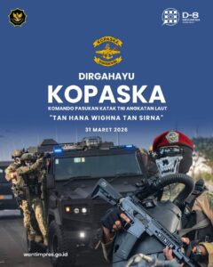 Dirgahayu Komando Pasukan Katak (KOPASKA).Dedikasi, keberanian, dan profesionalisme prajurit KOPASKA menjadi garda terdepan dalam menjaga kedaulatan maritim Indonesia. Teruslah menjadi kebanggaan bangsa, hadir dalam setiap tugas dengan semangat pengabdian tanpa batas demi keutuhan NKRI. Jayalah selalu KOPASKA, penjaga samudra Indonesia.