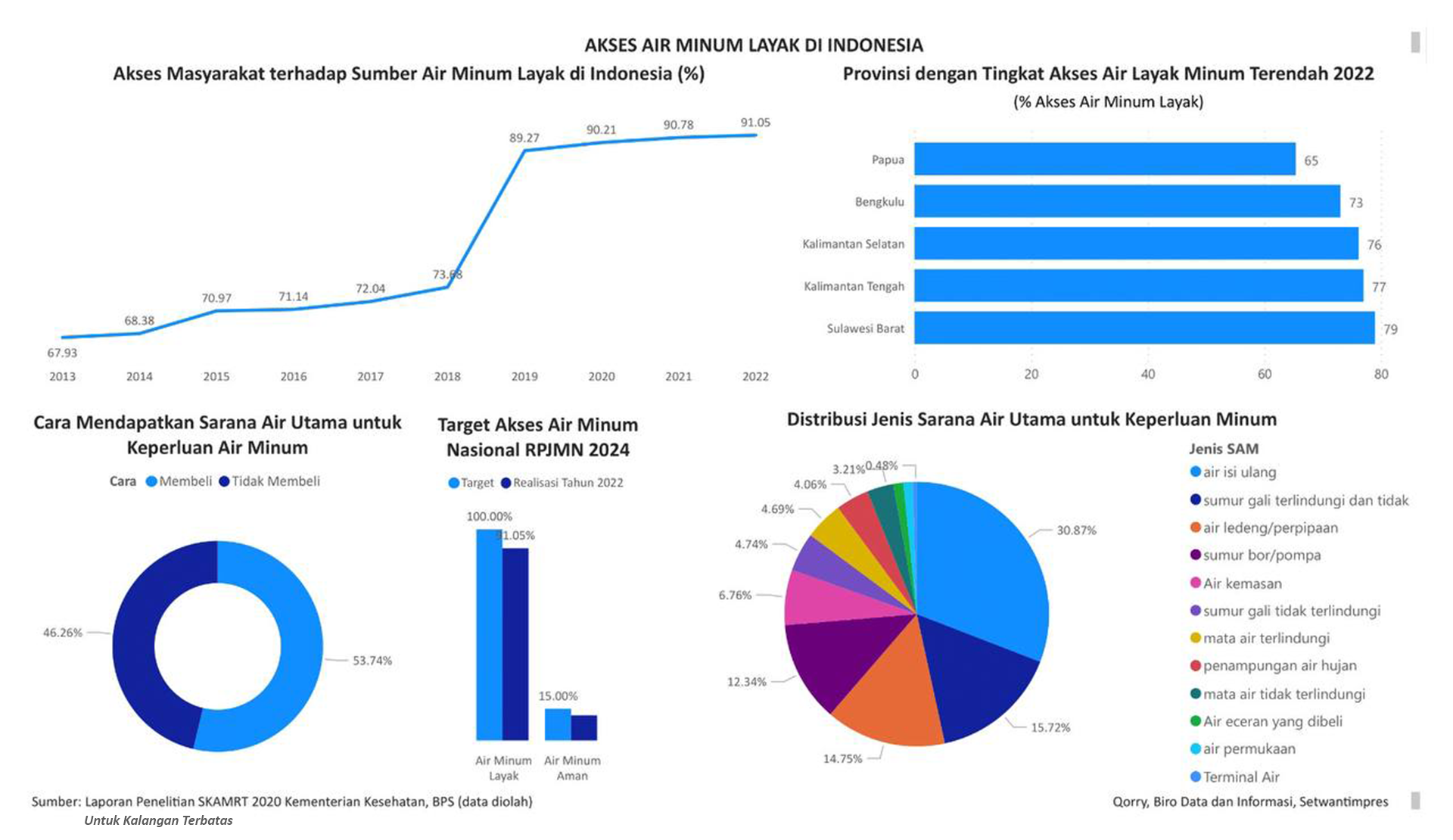 Visualisasi ini diolah dari data pada Laporan Penelitian Studi Kualitas Air Minum Rumah Tangga (SKAM RT) Kementerian Kesehatan Tahun 2020.