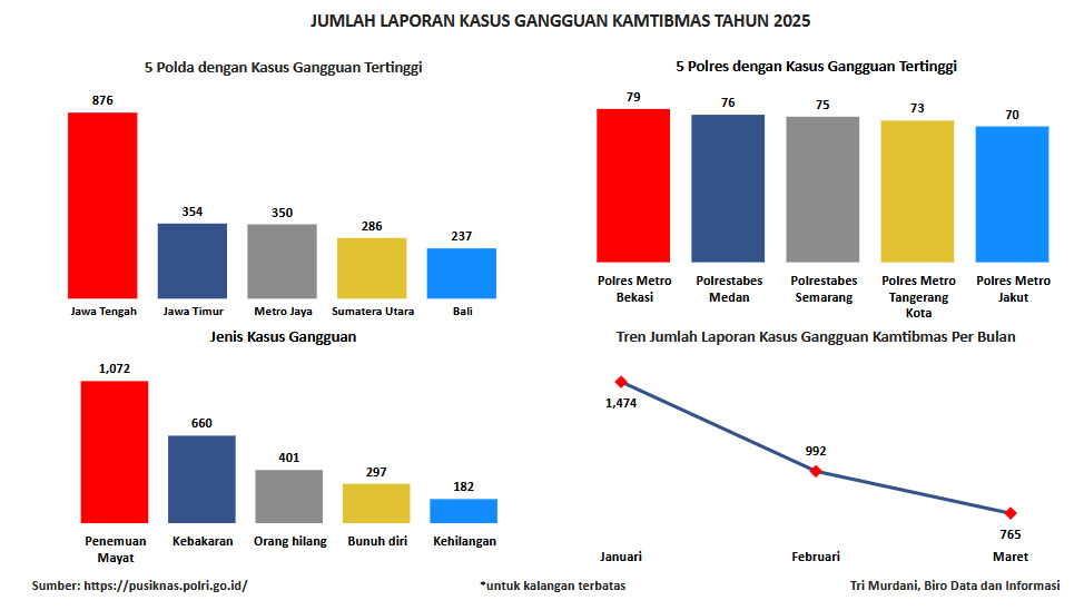 Dalam menciptakan situasi kamtibmas tak lepas dari peran serta dan dukungan dari warga masyarakat dalam membantu tugas-tugas kepolisian, pada 3 bulan terakhir untuk laporan kasus gangguan kamtibmas semakin menurun drastis