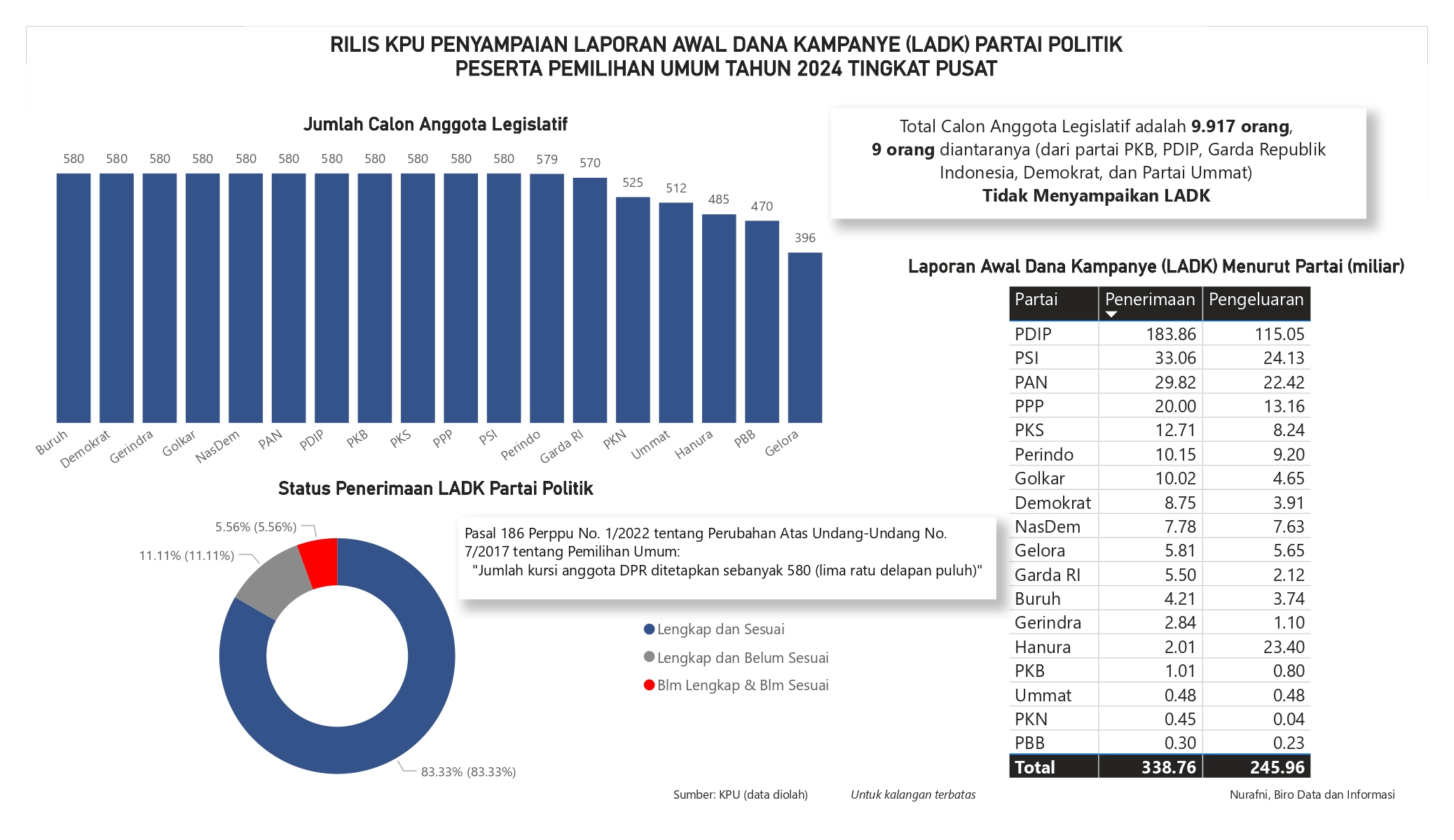Visualisasi menampilkan Laporan Awal Dana Kampanye (LADK) Partai Politik Peserta Pemilihan Umum (Pemilu) Tahun 2024 Tingkat Pusat.