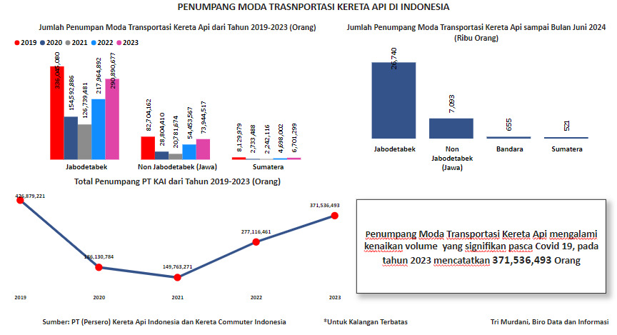 Visualisasi ini menampilkan jumlah penumpang transportasi kereta api setelah Covid-19 di Indonesia.