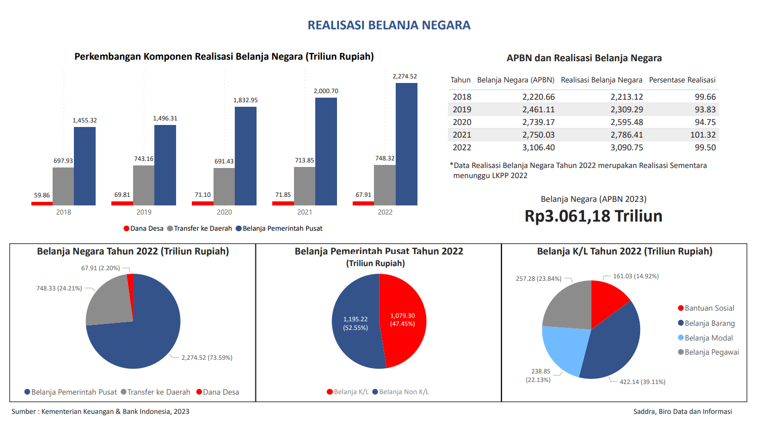 Visualisasi yang ditampilkan data realisasi belanja negara Indonesia beserta komponennya, Data dapat diakses melalui website Bank Indonesia. Data yang ditampilkan update bulan Desember 2022.