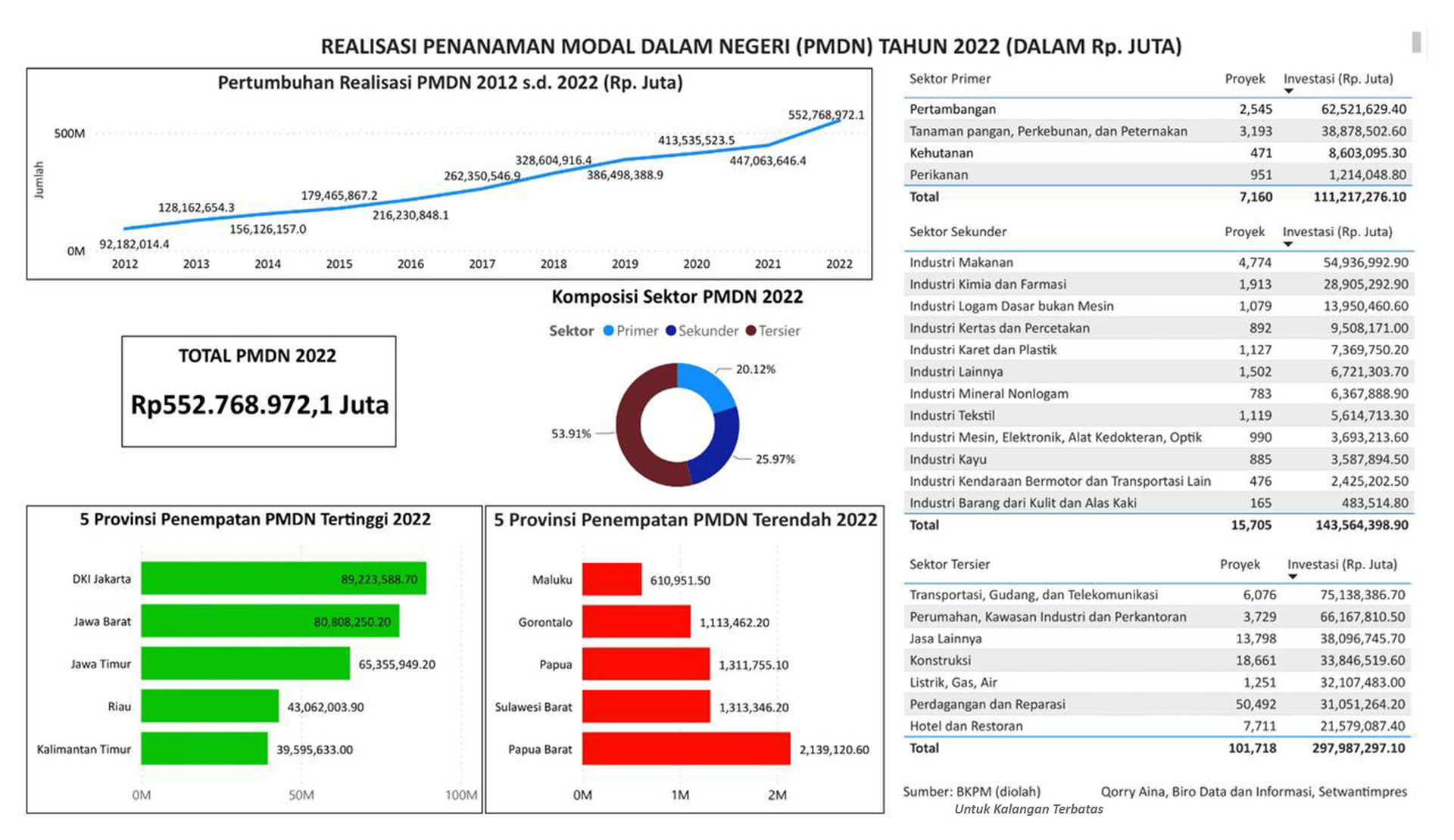 Visualisasi realisasi penanaman modal dalam negeri tahun 2022 diolah dari data yang diperoleh dari Badan Koordinasi Penanaman Modal.