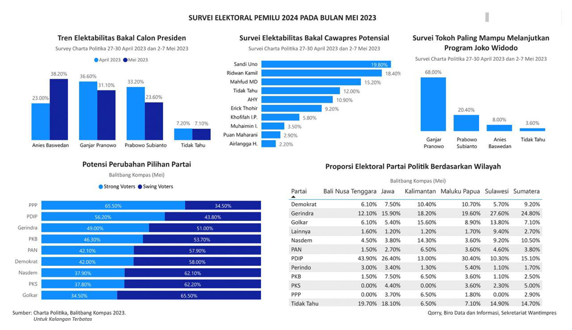 Visualisasi dari Survei Charta Politika dan Balitbang Kompas pada Tahun 2023.
